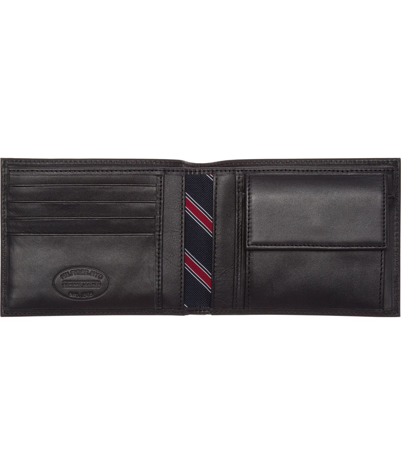 Αυτό το Ανδρικό Δερμάτινο Eton Πορτοφόλι Μαύρο Tommy Hilfiger AM0AM00651-002 που διπλώνει είναι φτιαγμένο από ματ δέρμα και διαθέτει μια νότα χρώματος χάρη στη signature ρίγα στο εσωτερικό.