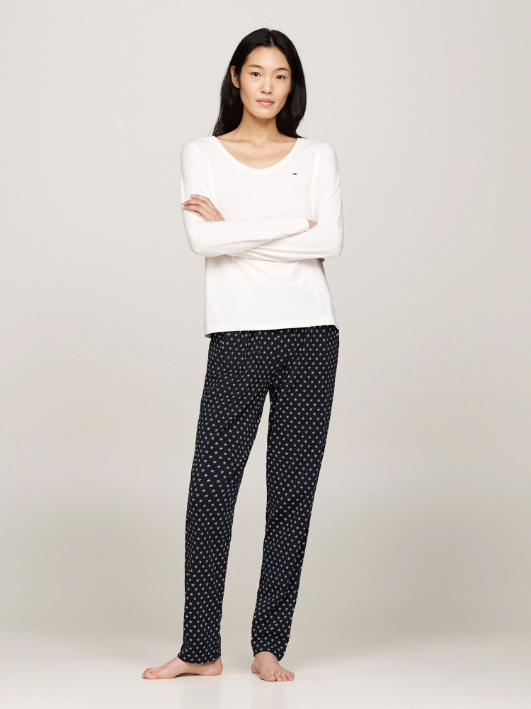 Ανανεώστε τη homewear συλλογή σας με αυτή τη γυναικεία πιτζάμα από βαμβακερό jersey, με τη λαιμόκοψη scoop και το άνετο λάστιχο με branded λεπτομέρειες.