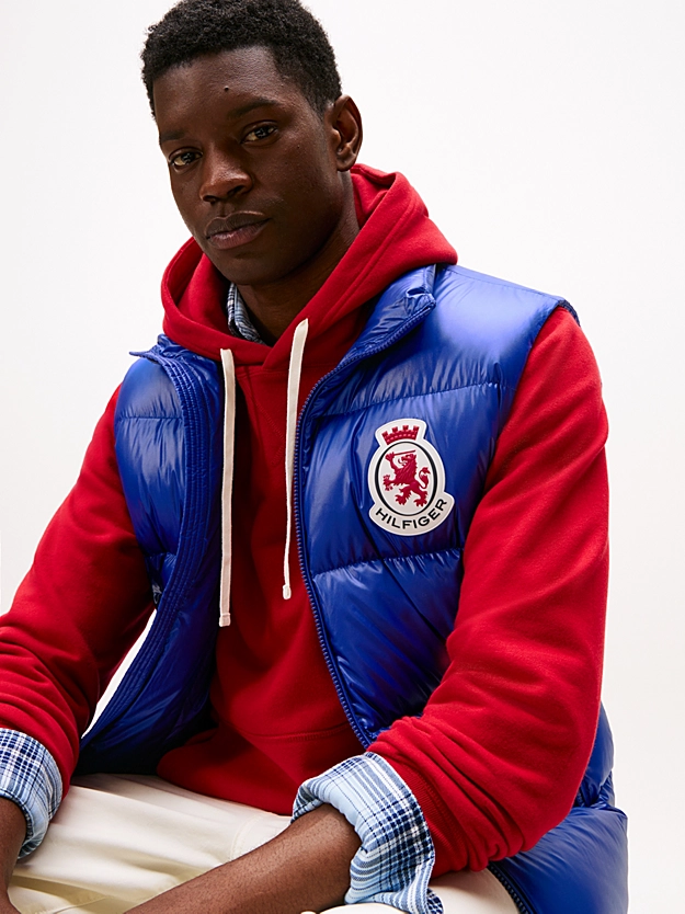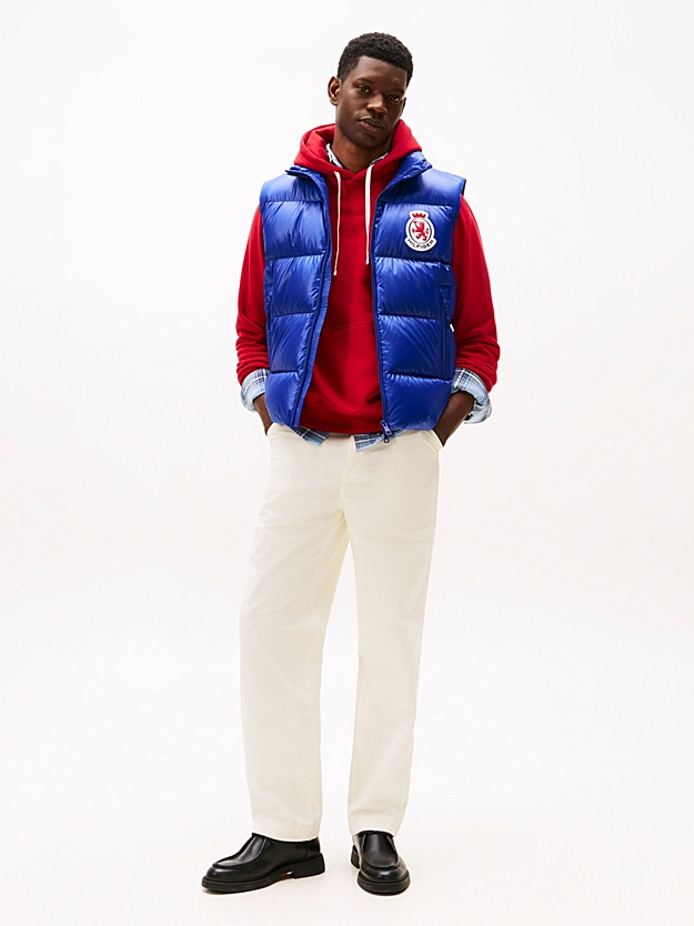 Αυτό το Ανδρικό Γιλέκο Μπλε Tommy Hilfiger MW0MW41514-D03 διαθέτει αδιάβροχο φινλιρισμα και γέμιση από πούπουλα για επιπλέον ζεστασιά.