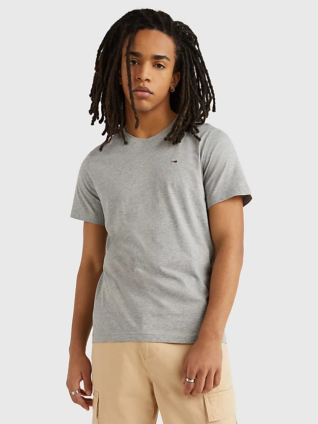 Το καθαρό βαμβακερό jersey σε αυτό το κλασικό Ανδρικό T-shirt Γκρι Tommy Jeans DM0DM04411-038 επιτρέπει στο ύφασμα να αναπνέει ενώ η Tommy Hilfiger σημαία το διακοσμεί διακριτικά.