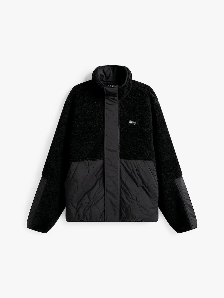 Αυτό το άνετο Ανδρικό Teddy Μπουφάν Μαύρο Tommy Jeans DM0DM22066-BDS με επένδυση συνδυάζει teddy και καπιτονέ πάνελς για ζεστασιά όταν πέφτει η θερμοκρασία.