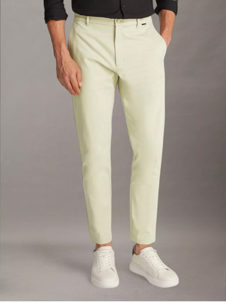 Αναβαθμίστε τις κομψές σας εμφανίσεις με αυτό το Ανδρικό Παντελόνι Πράσινο Calvin Klein K10K113423-LEB, το οποίο είναι φτιαγμένο από οργανικό ελαστικό βαμβάκι για μεγαλύτερη ευκολία κινήσεων.