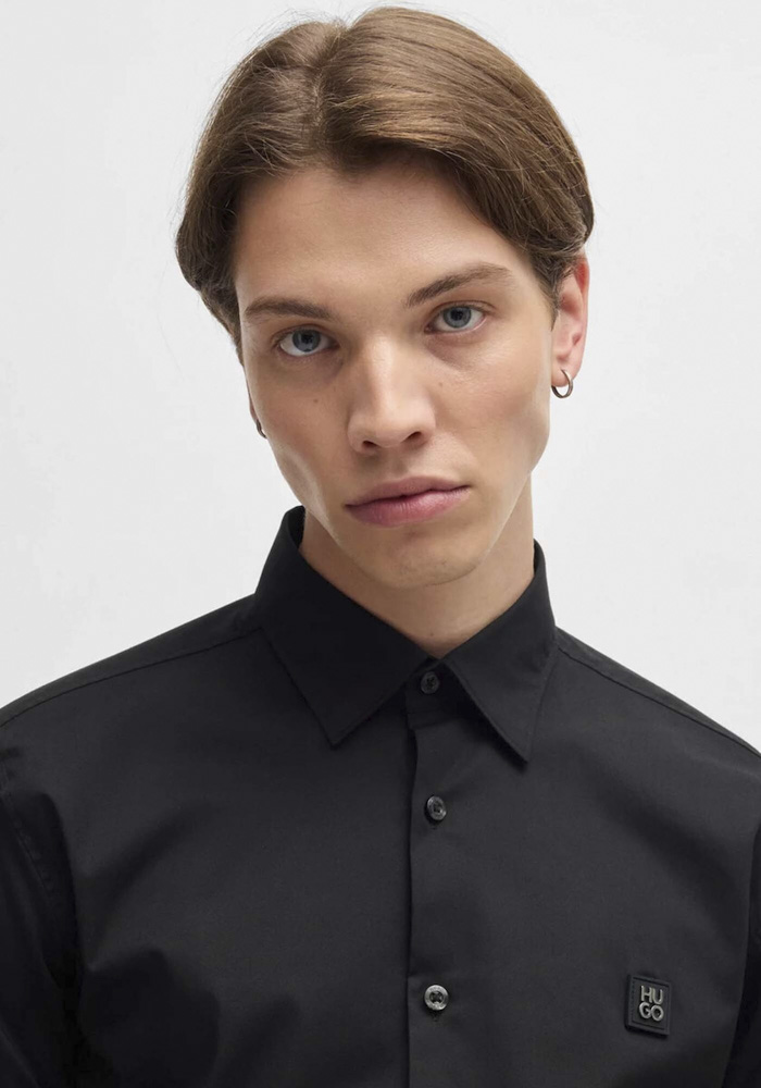 Δείξτε άνετοι με αυτό το Ανδρικό Ermo Πουκάμισο Μαύρο Hugo 50505315-001 το οποίο είναι φτιαγμένο από ελαστικό βαμβάκι με κομψό γιακά και το λογότυπο στο στήθος.