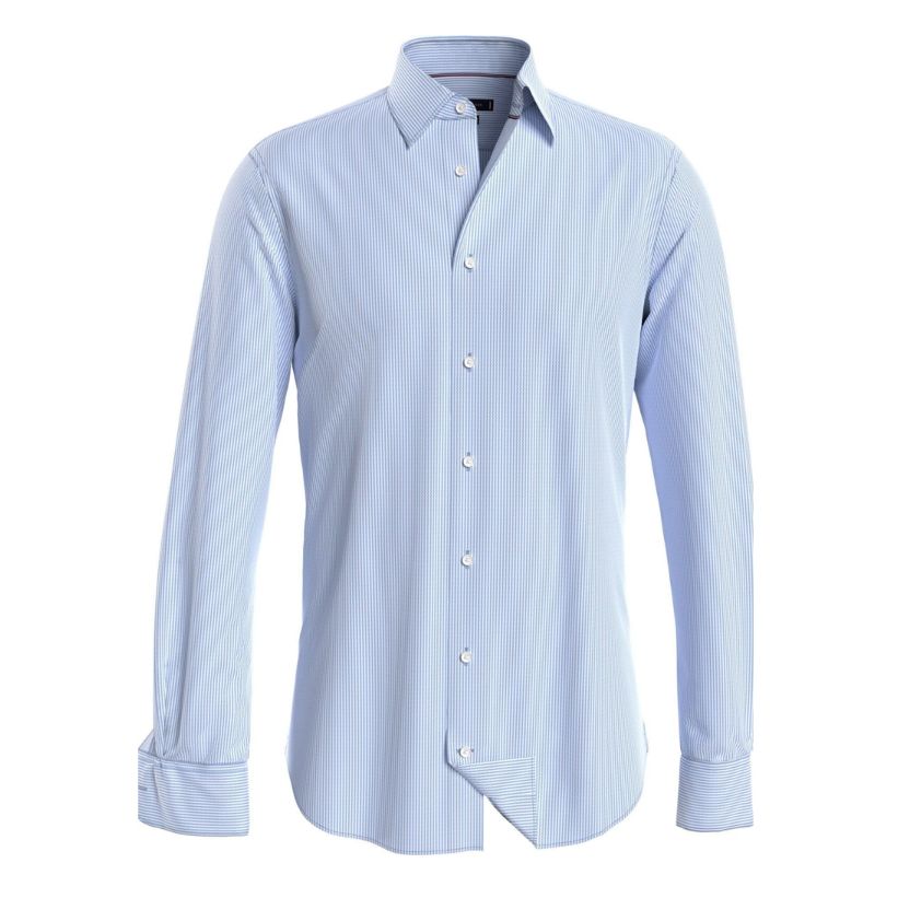 Αυτό το Ανδρικό Πουκάμισο Γαλάζιο Tommy Hilfiger MW0MW37335-C1Z σε στενή γραμμή θα κολακέψει τη σιλουέτα σας, ενώ το ελαστικό φινίρισμα το καθιστά άνετο για καθημερινές εμφανίσεις.