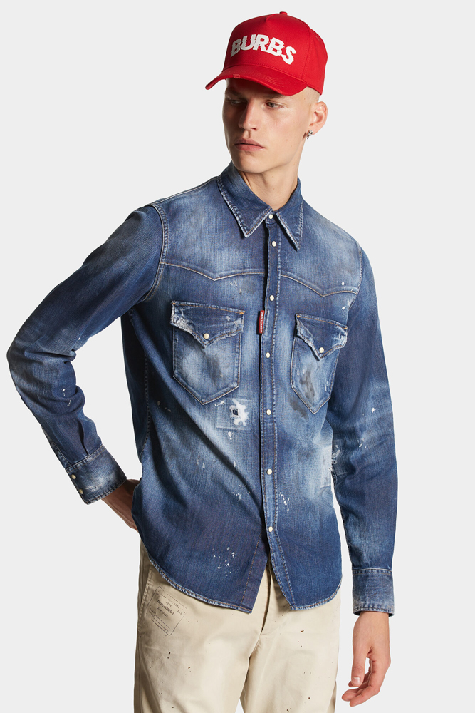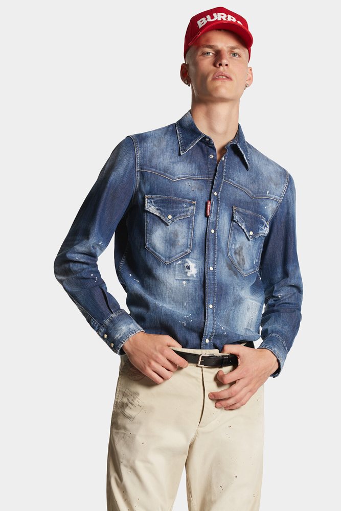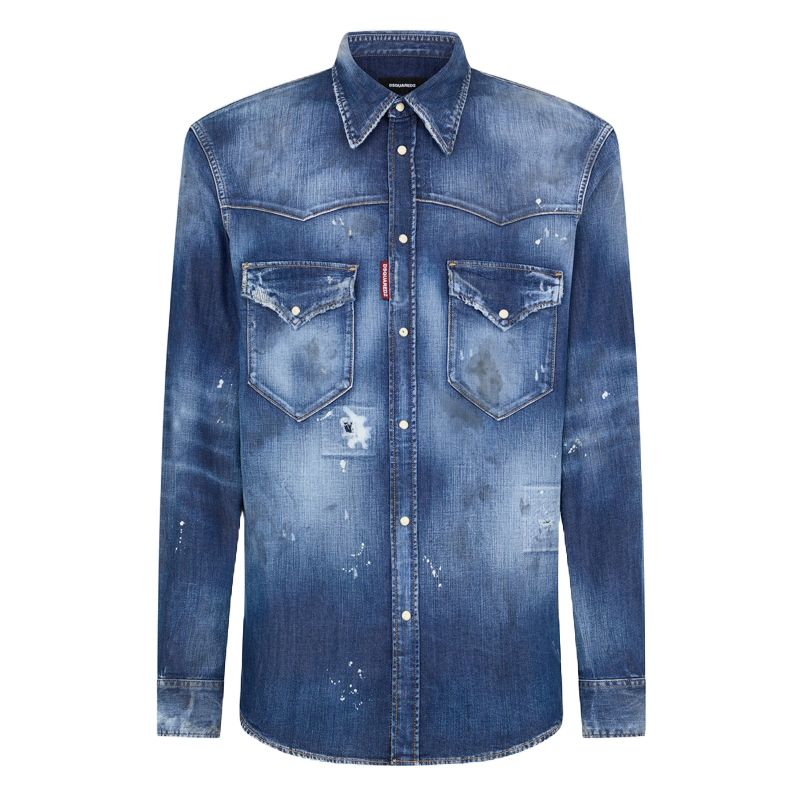 Ανδρικό Western Τζιν Πουκάμισο Μπλε Dsquared2 S74DM0795S30341-470