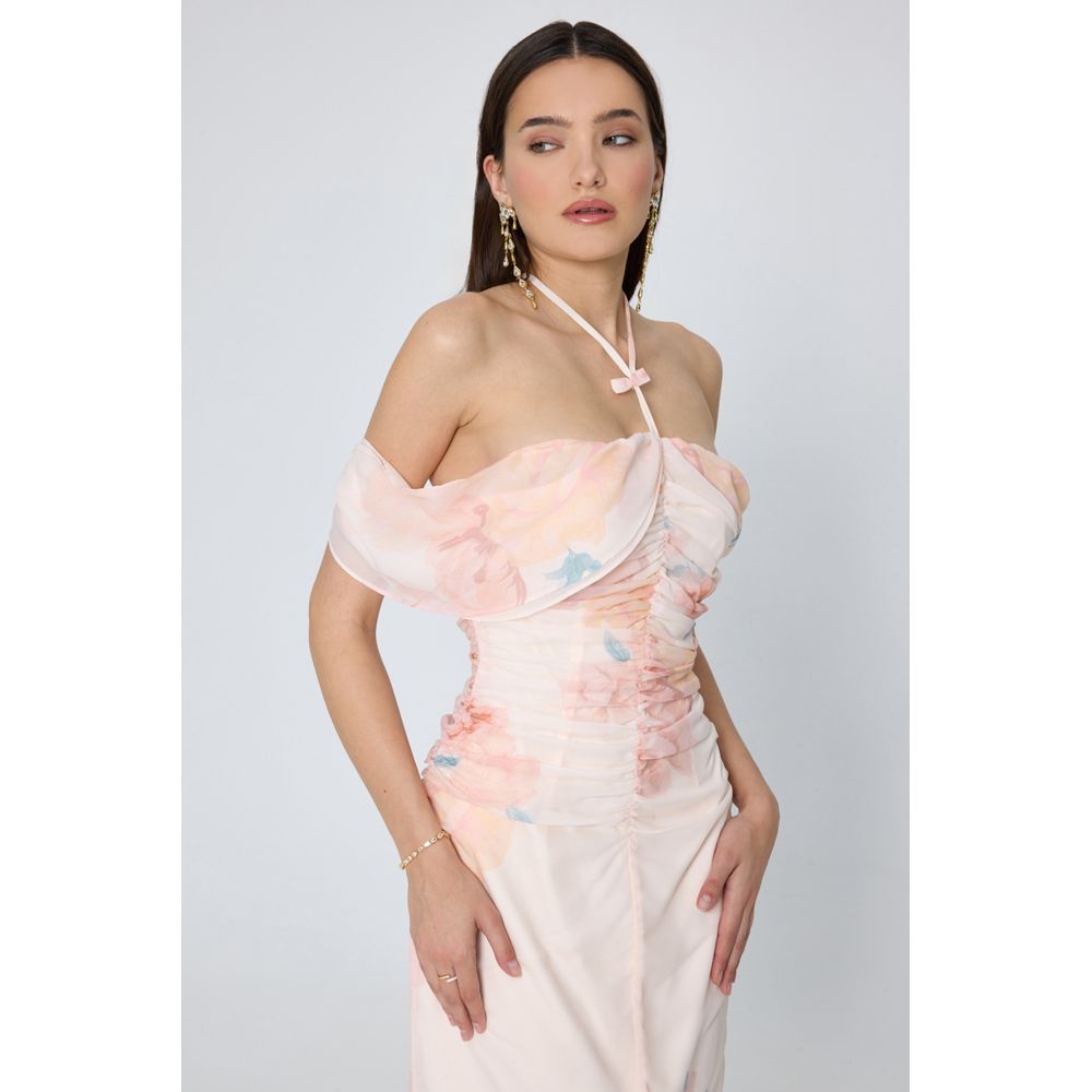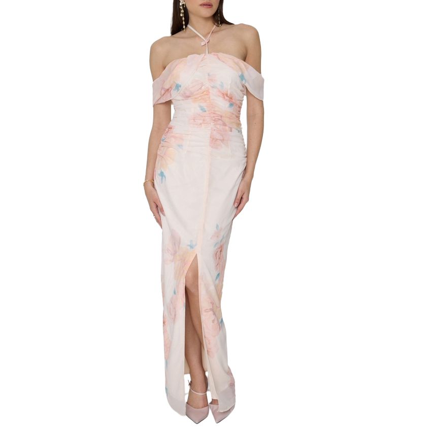 Εντυπωσιάστε με αυτό το κομψό μακρύ Γυναικείο Ambrosia Φόρεμα Vanilla Mind Matter MML25-01-07-037 από φλοράλ μουσελίνα, ιδανικό για ξεχωριστές περιστάσεις που απαιτούν στυλ και άνεση.