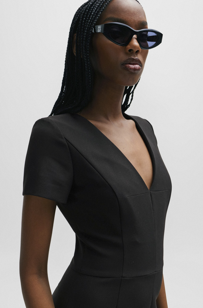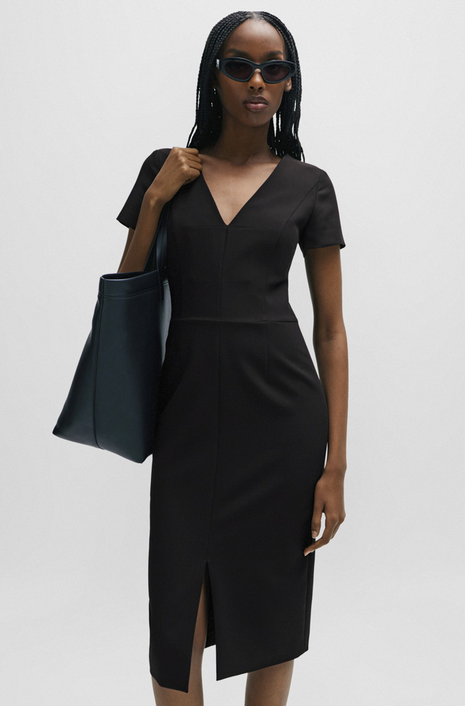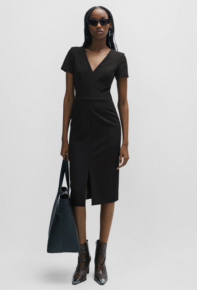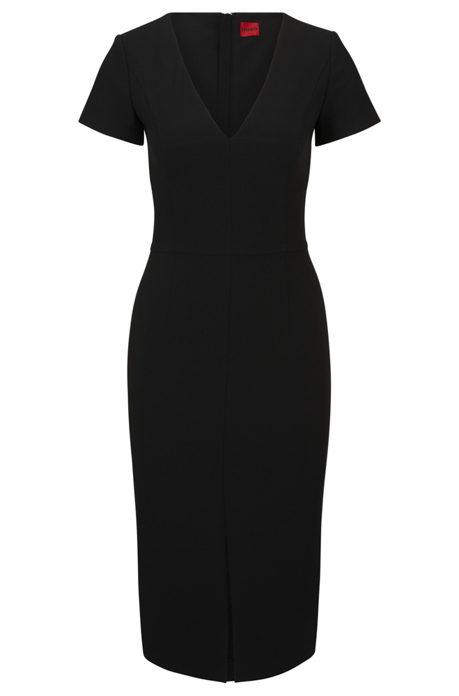 Αυτό το Γυναικείο Kalamara Φόρεμα Μαύρο Hugo 50508611-001 διαθέτει V-λαιμόκοψη και slim γραμμή.