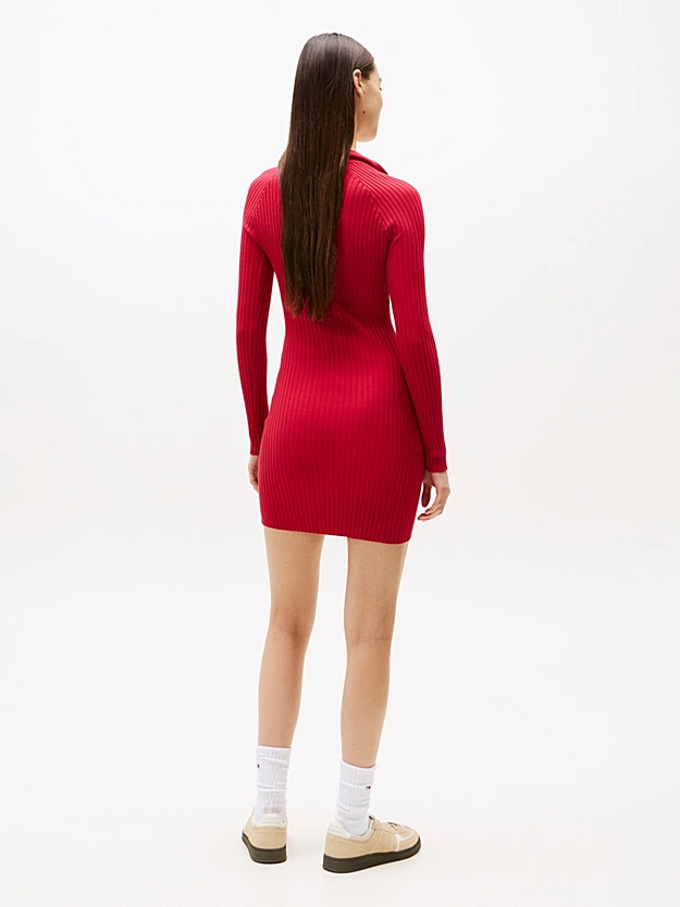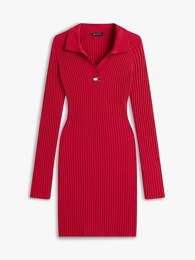 Αυτό το Γυναικείο Μακρυμάνικο Πλεκτό Φόρεμα Κόκκινο Tommy Jeans DW0DW22183-XJP με slim γραμμή και αθλητικό γιακά είναι ιδανικό για μία άνετη εμφάνιση χωρίς συμβιβασμούς στο στιλ.
