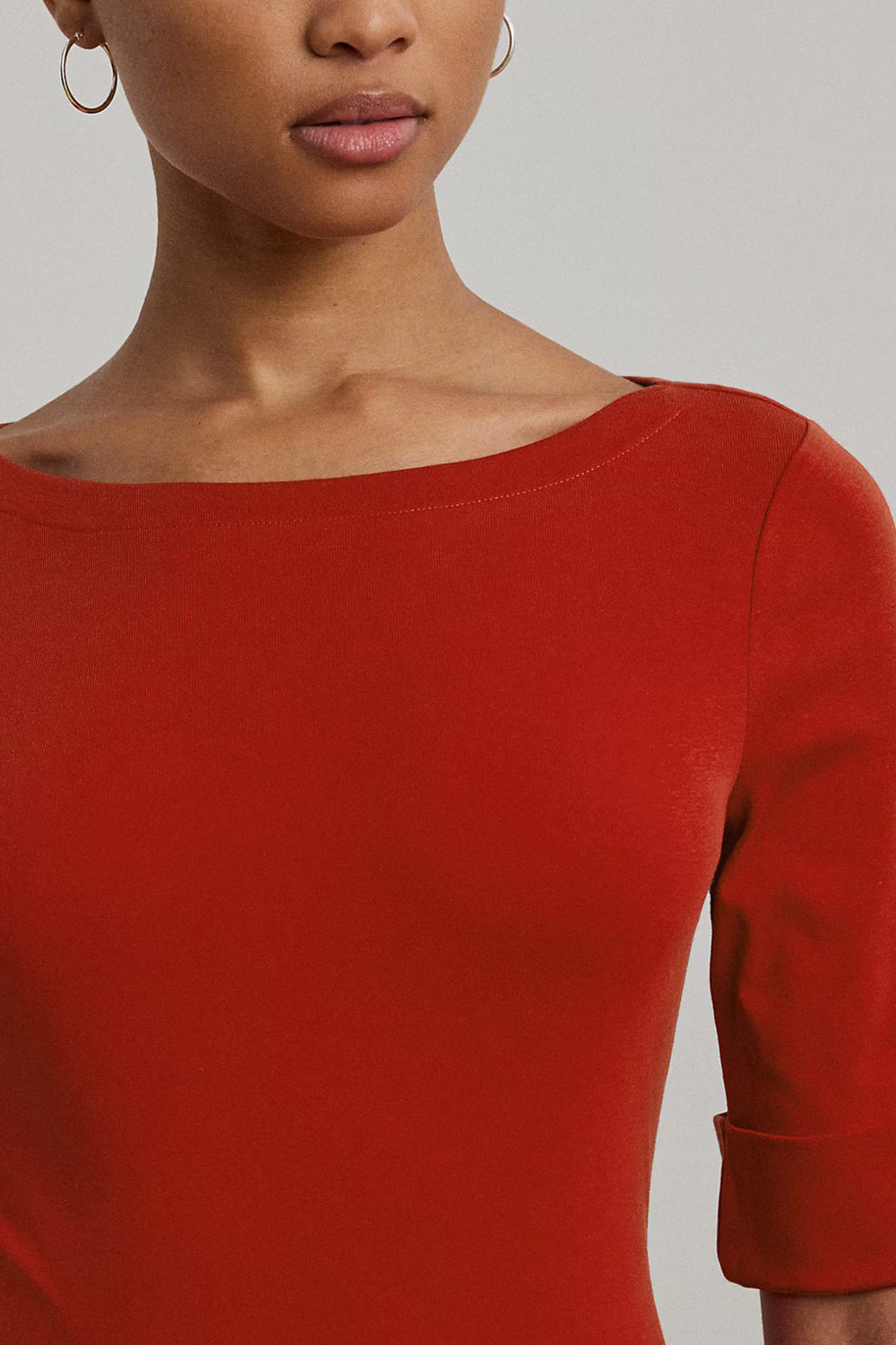 Ανανεώστε τις καθημερινές σας εμφανίσεις με αυτό το Γυναικείο Judy T-shirt Κόκκινο Ralph Lauren 200654963193-600 από ελαστικό βαμβάκι με μανίκια μέχρι τον αγκώνα.