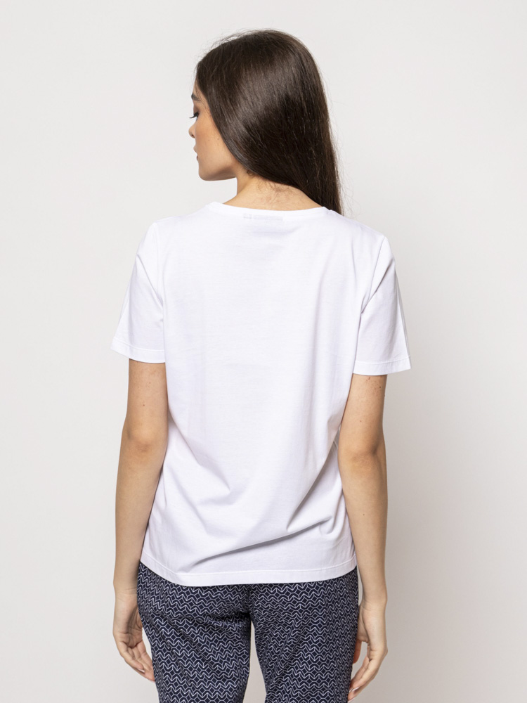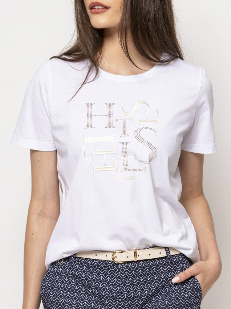 Αναβαθμίστε τις καθημερινές σας εμφανίσεις με αυτό το Γυναικείο Matka T-shirt Λευκό Heavy Tools T17033-WHITE με μπροστινό λογότυπο με στρας.