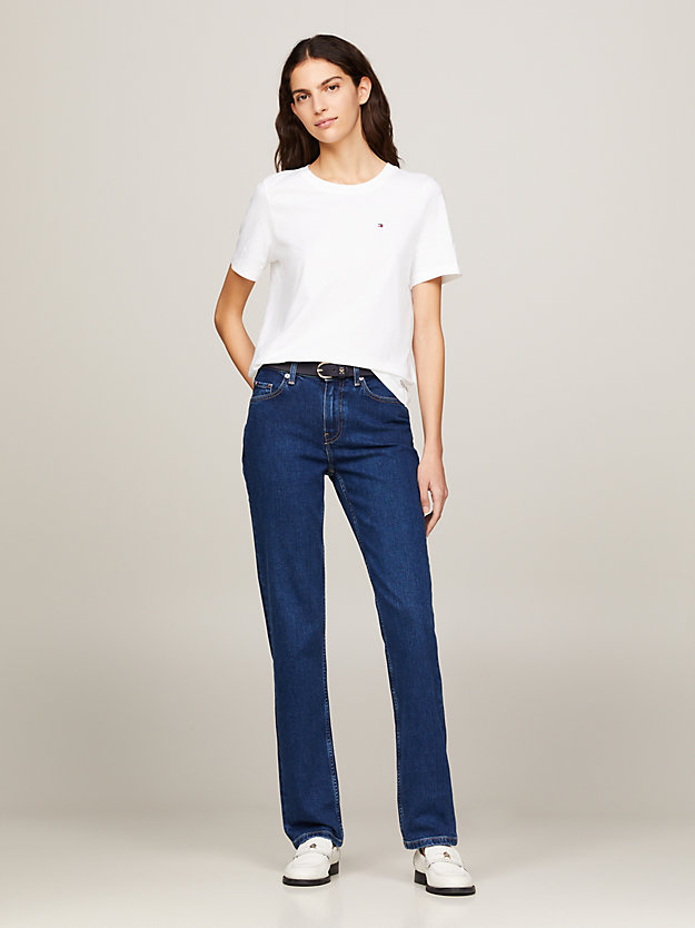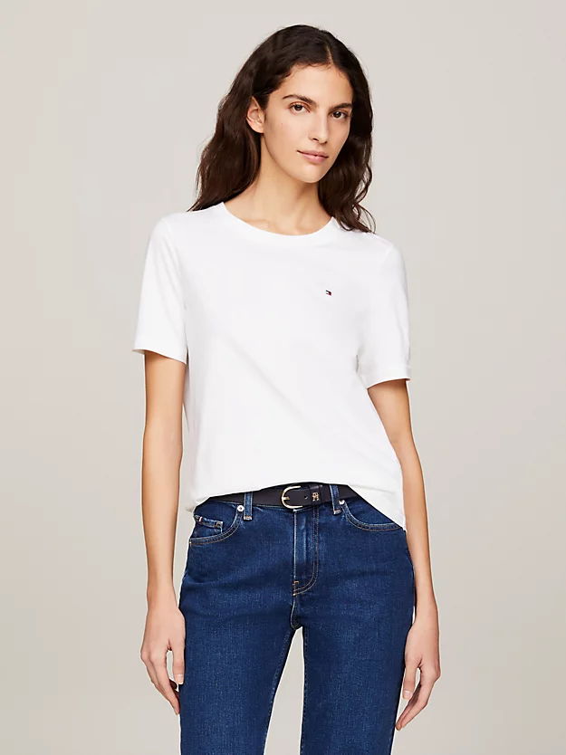 Η νέα PRE FW '24 collection της Tommy Hilfiger μόλις έφτασε! Ανανεώστε τη συλλογή σας με αυτό το Γυναικείο Modern T-shirt Λευκό Tommy Hilfiger WW0WW39848-YCF το οποίο είναι φτιαγμένο από αγνό βαμβάκι με κεντητό σημαιάκι στο στήθος και κλασική λαιμόκοψη.