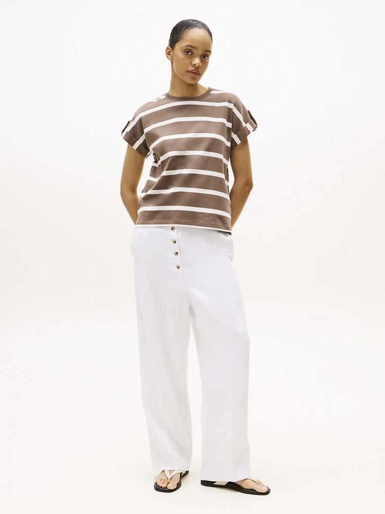 Γυναικείο Ριγέ T-shirt Καφέ Tommy Hilfiger WW0WW45628-0BL Γυναικείο Ριγέ T-shirt Καφέ Tommy Hilfiger WW0WW45628-0BL