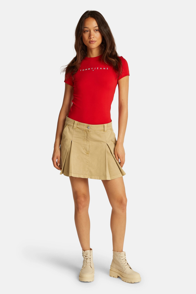Η νέα PRE SS '25 collection της Tommy Jeans μόλις έφτασε! Αυτό το βαμβακερό Γυναικείο Slim Linear T-shirt Κόκκινο Tommy Jeans DW0DW18398-XME με το λογότυπο στο στήθος θα αναβαθμίσει τις εμφανίσεις της σεζόν.