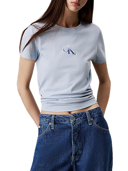 Γυναικείο Slim T-shirt Γαλάζιο Calvin Klein J20J225252-CUI Γυναικείο Slim T-shirt Γαλάζιο Calvin Klein J20J225252-CUI