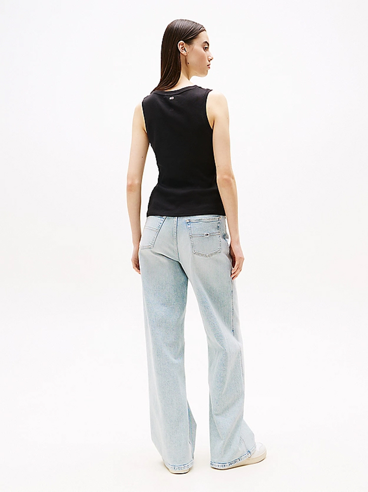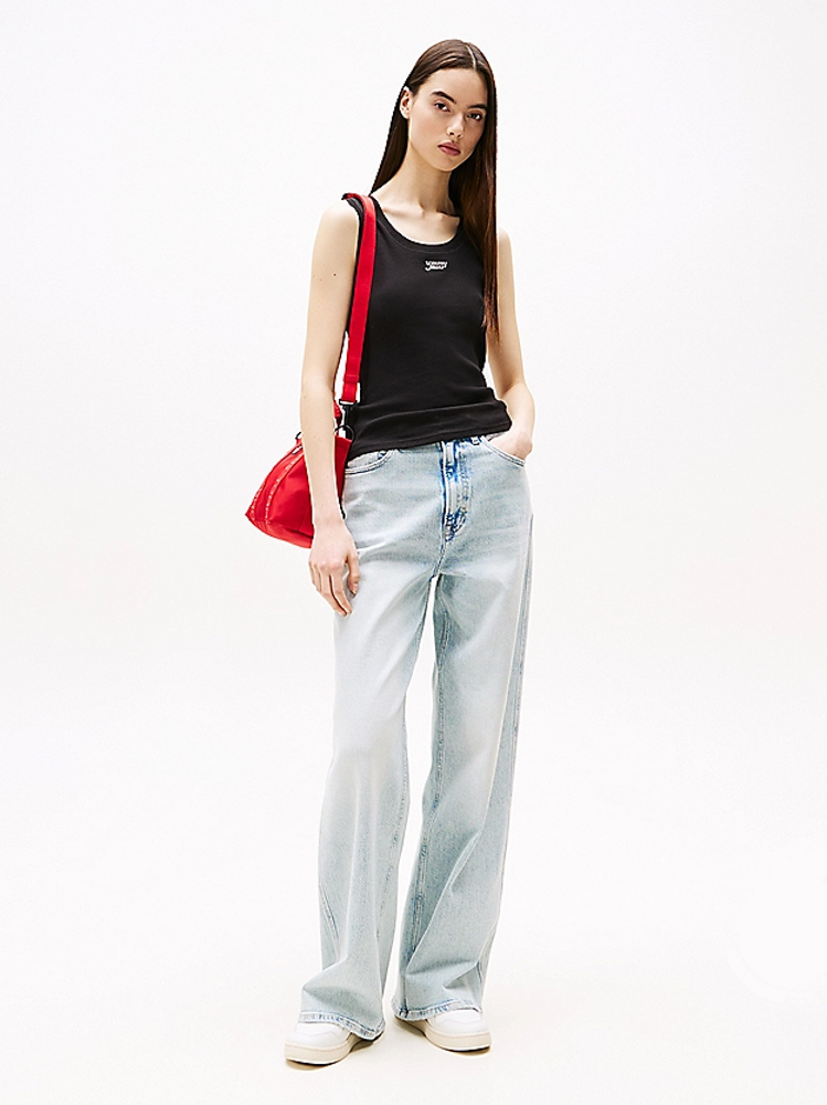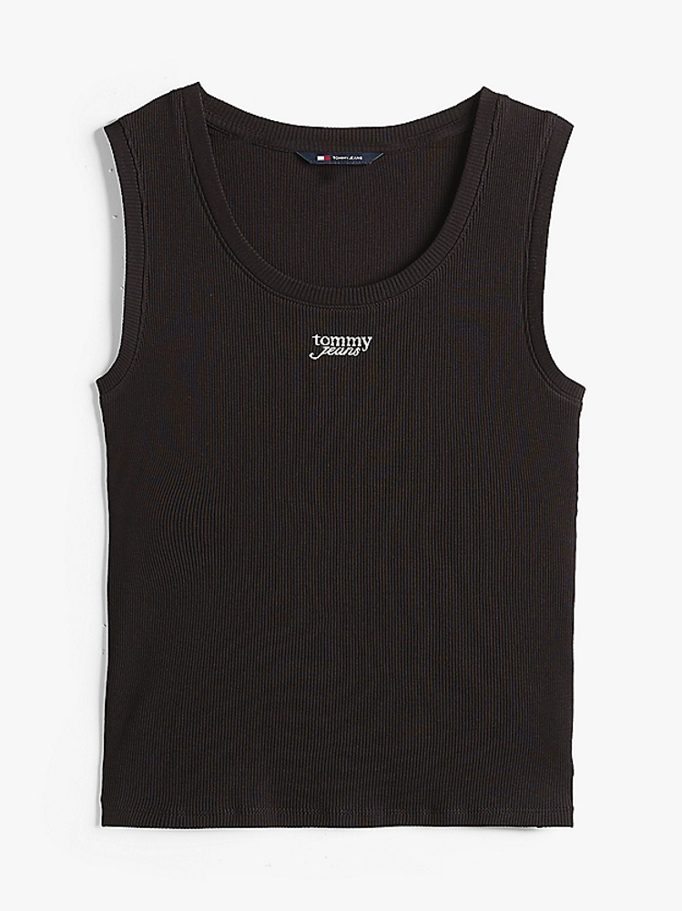 Αυτό το Γυναικείο Slim Tank Top Μαύρο Tommy Jeans DW0DW21369-BDS είναι φτιαγμένο από αγνό βαμβάκι με ριμπ υφή για να δημιουργήσει μια στενή γραμμή που είναι ιδανική για layering.