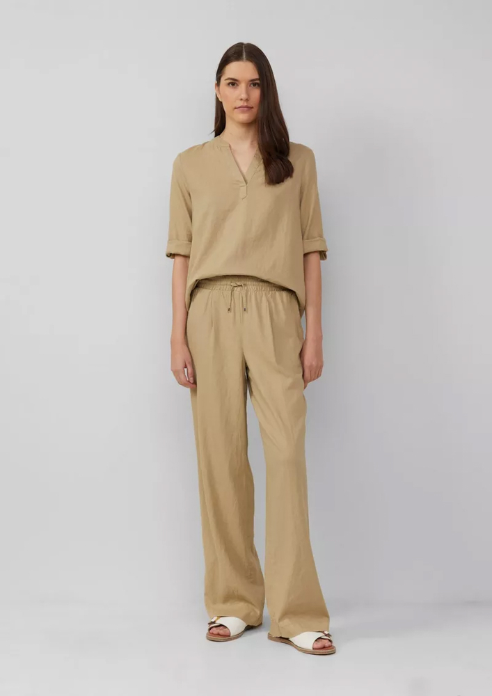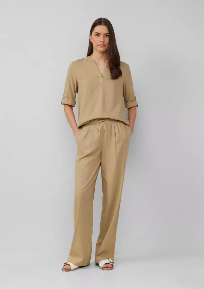 Προσθέστε στιλ στις καλοκαιρινές σας εμφανίσεις με αυτό το Γυναικείο Λινό Παντελόνι Μπεζ S.Oliver 2164286-8363.