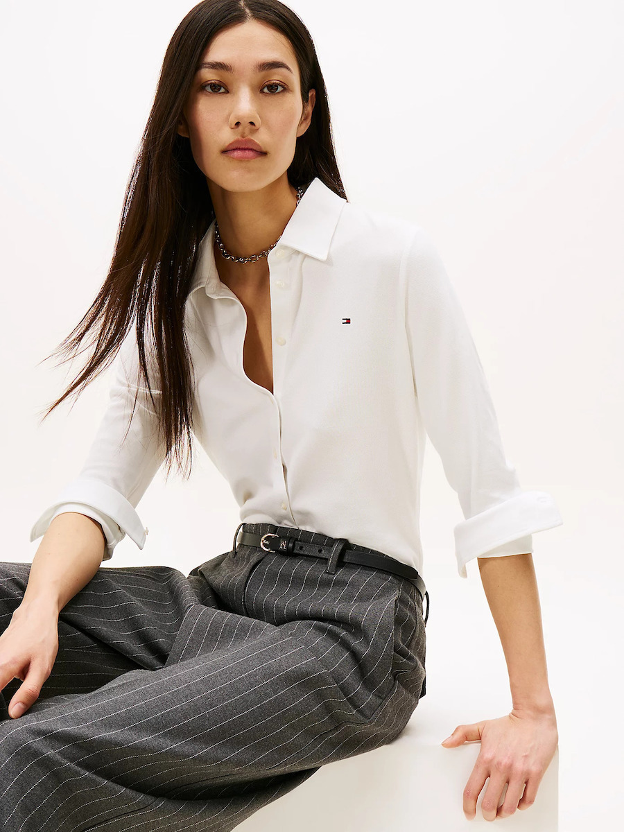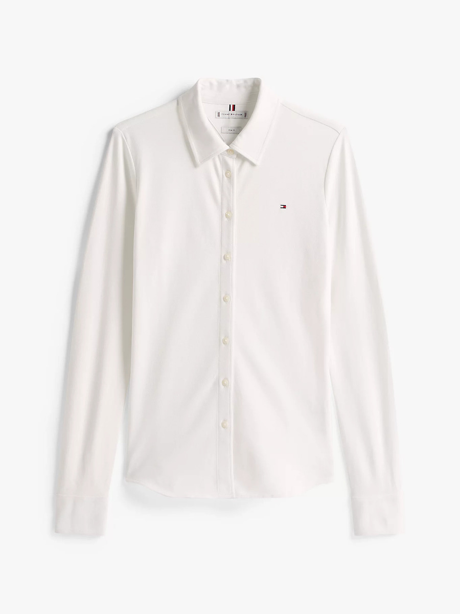 Φορέστε αυτό το κομψό Γυναικείο 1985 Πουκάμισο Λευκό Tommy Hilfiger WW0WW43528-YBL, φτιαγμένο από πικέ βαμβακερό ελαστικό ύφασμα για άνεση όλη την ημέρα.