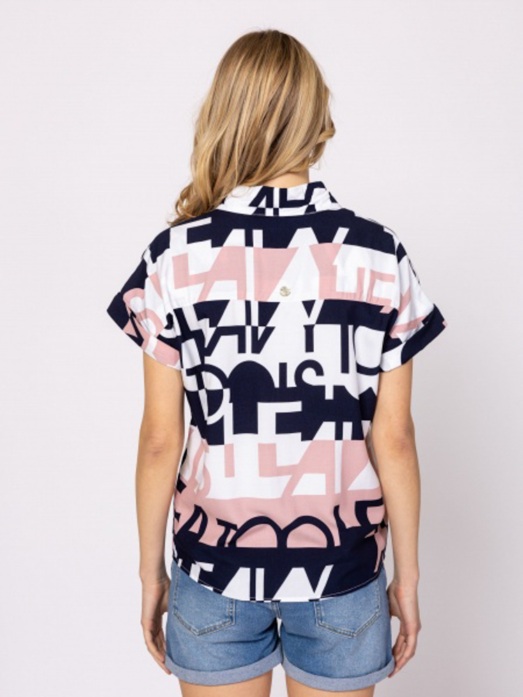 Προσθέστε στιλ στις καλοκαιρινές σας εμφανίσεις με αυτό το Γυναικείο Rhinty Πουκάμισο Heavy Tools T40013-LETTERS το οποίο διαθέτει με μοτίβο παντού.