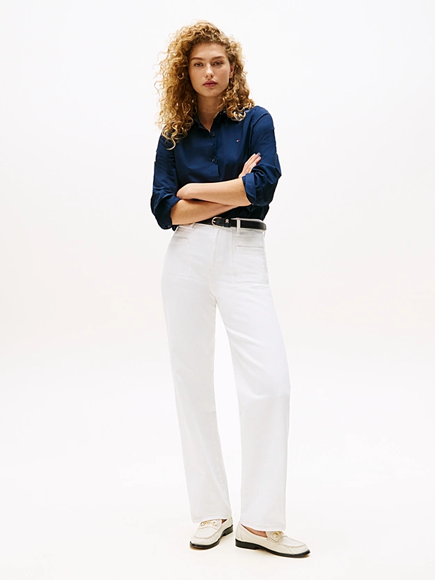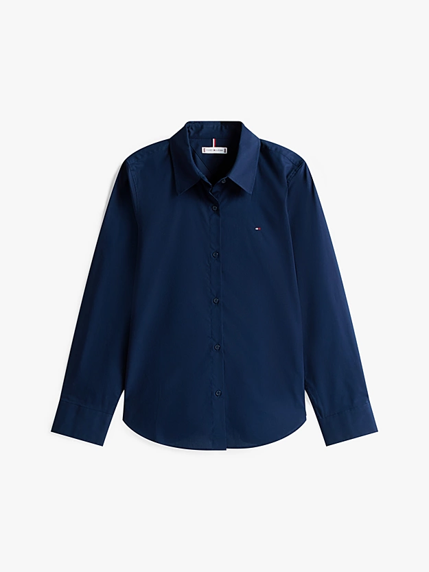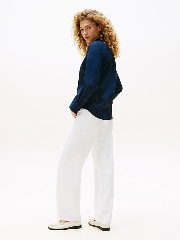 Η νέα PRE FW '25 collection της Tommy Hilfiger μόλις έφτασε! Για καθημερινές εμφανίσεις με στιλ επιλέξτε αυτό το Γυναικείο Πουκάμισο Navy Μπλε Tommy Hilfiger WW0WW43577-02G το οποίο είναι φτιαγμένο από ελαστικό βαμβάκι για απόλυτη άνεση.