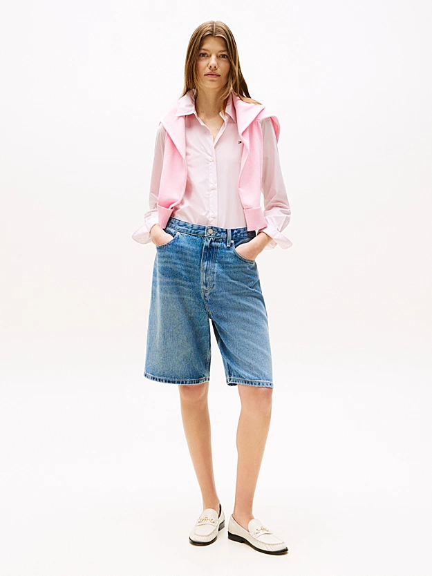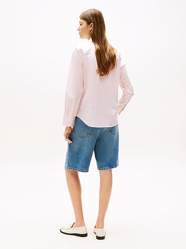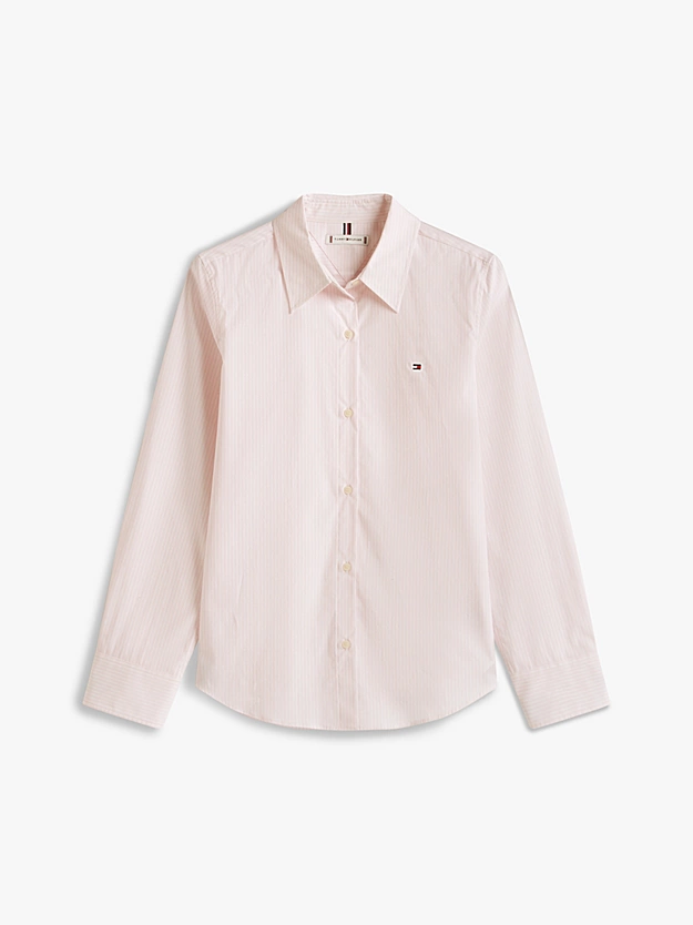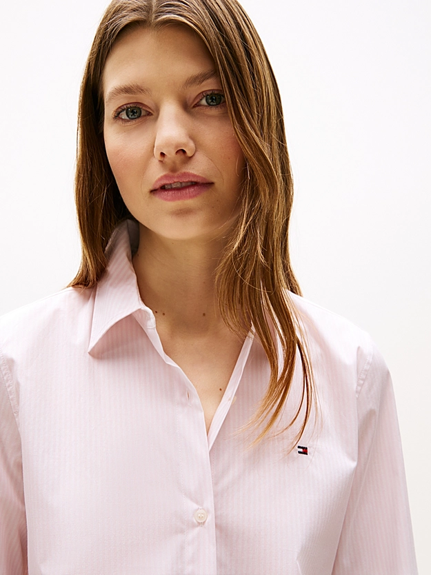 Δημιουργήστε εκλεπτυσμένες εμφανίσεις με στιλ επιλέγοντας αυτό το Γυναικείο Πουκάμισο Ροζ Tommy Hilfiger WW0WW47169-0D8, φτιαγμένο από ελαστική βαμβακερή ποπλίνα με έντονο κεντητό σημαιάκι.