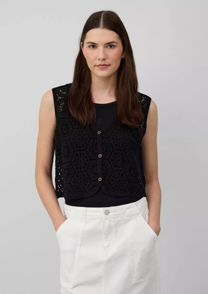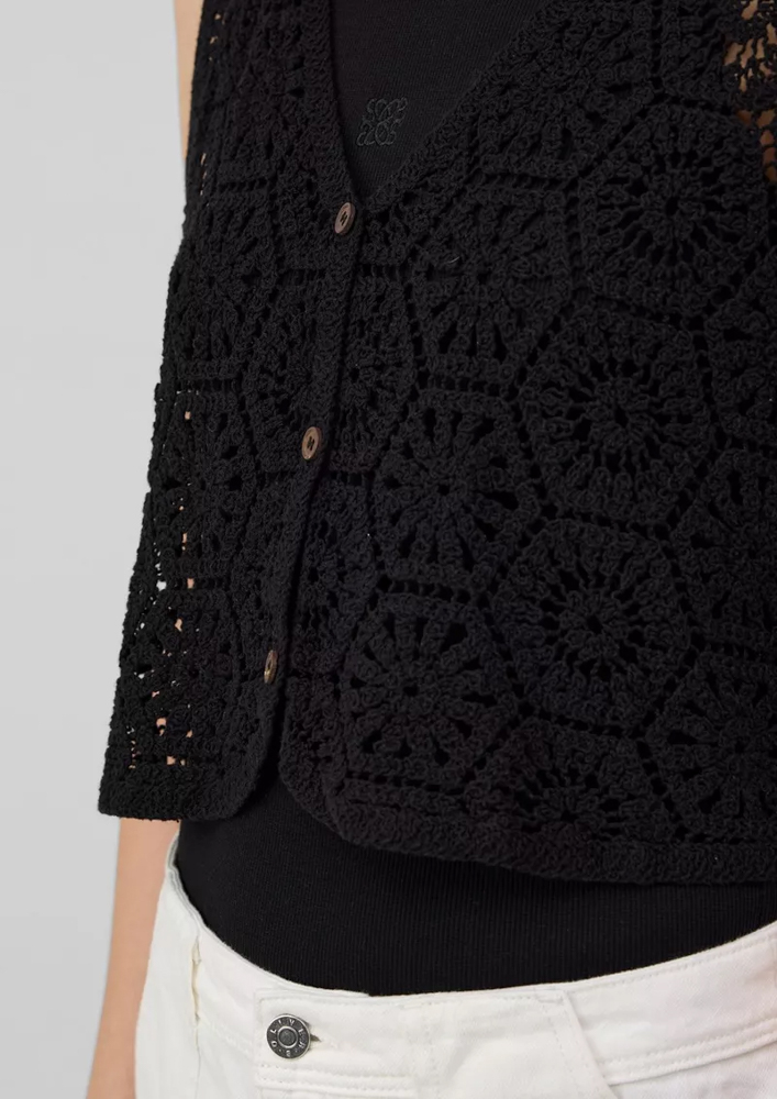 Απογειώστε τις καθημερινές σας εμφανίσεις με αυτή τη Γυναικεία Αμάνικη Ζακέτα Μαύρη S.Oliver 2166279-9999 η οποία είναι φτιαγμένη από βαμβακερή δαντέλα.