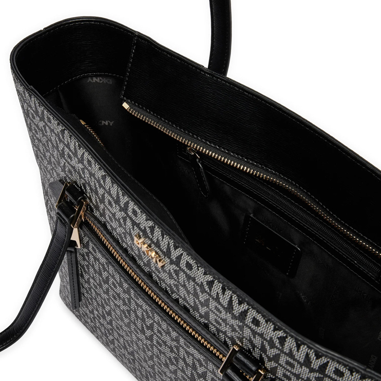 Αυτή η διαχρονική Γυναικεία Bryant Ave Tote Τσάντα Μαύρη DKNY R42AYE20-XLB θα αναβαθμίσει τη συλλογή σας χάρη στο ευρύχωρο εσωτερικό και το μεταλλικό λογότυπο μπροστά.