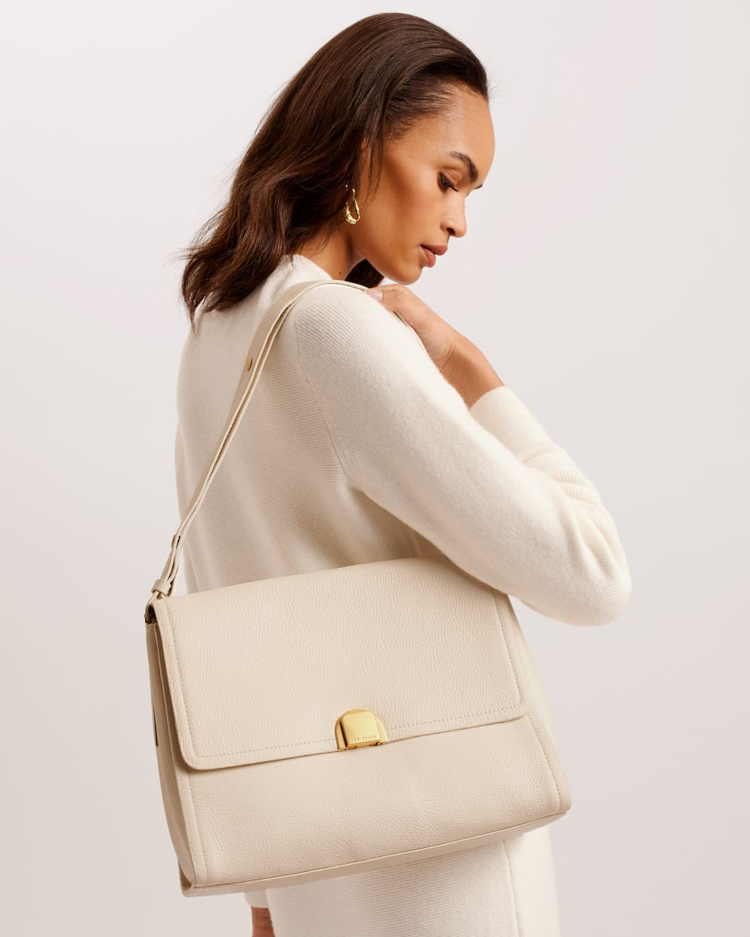 Το λιτό σχέδιο και το χρυσό λογότυπο μπροστά καθιστούν αυτή τη Γυναικεία Δερμάτινη Imilily Τσάντα Ώμου Εκρού Ted Baker 273864-IVORY το απόλυτο casual κομμάτι.