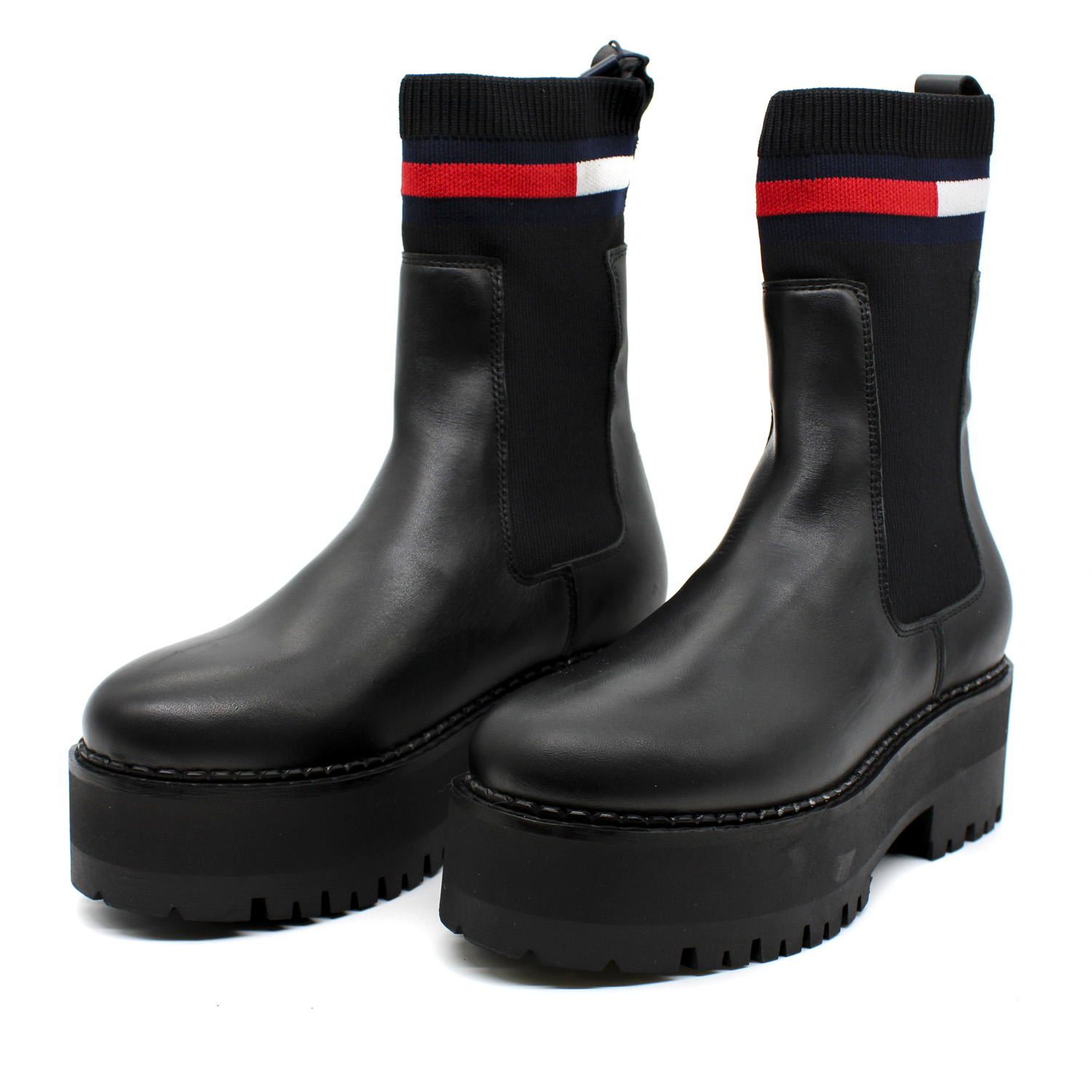 Γυναικεία Δερμάτινα Flatform Chelsea Μποτάκια Μαύρα Tommy Jeans EN0EN02301-BDS