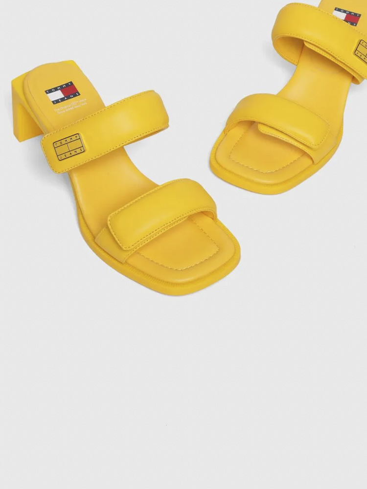Για κομψές εμφανίσεις με στιλ επιλέξτε αυτά τα Γυναικεία Soho Σανδάλια Κίτρινα Tommy Hilfiger EN0EN02558-ZFM τα οποία είναι φτιαγμένα από δέρμα και λογότυπο Tommy Jeans στο τακούνι.