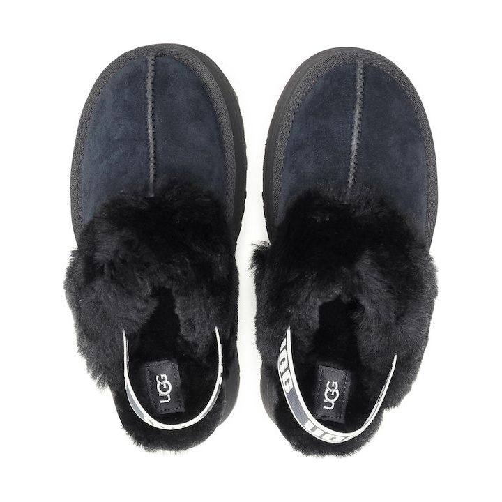 Δώστε στυλ στις casual εμφανίσεις σας με αυτά τα Γυναικεία Funkette Mules Μαύρα UGG 1113474-BLK από suede δέρμα εξωτερικά και sheepskin γούνινη επένδυση.